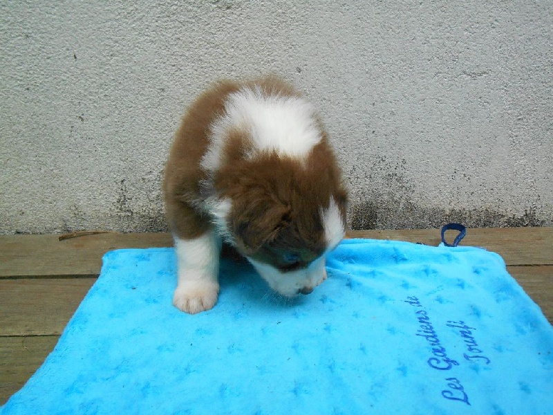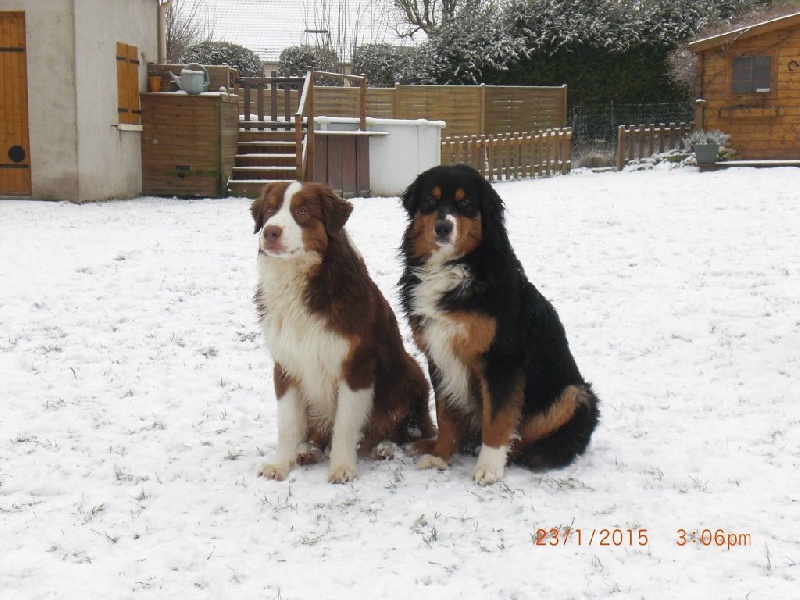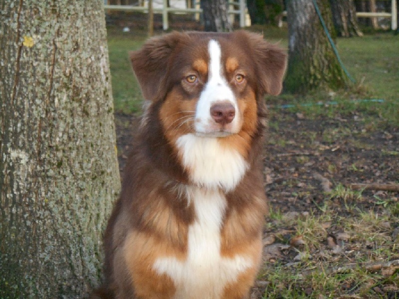 Joli mâle rouge tricolore, celui qui a le plus de blanc au niveau du collier. Queue écourtée. Est parti chez Greg pour faire de l'agility.