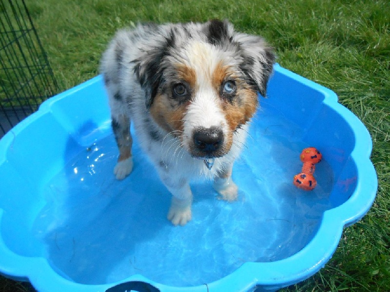 Jolie femelle bleue merle qui partira faire de l'agility chez Jean-Jacques et fera quelques expositions avec nous suivant son évolution.